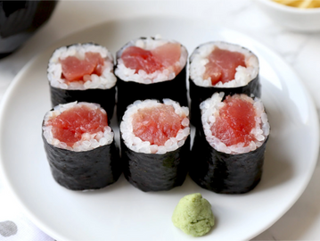 Hamachi, sriracha, cucumber, and radish sprouts.